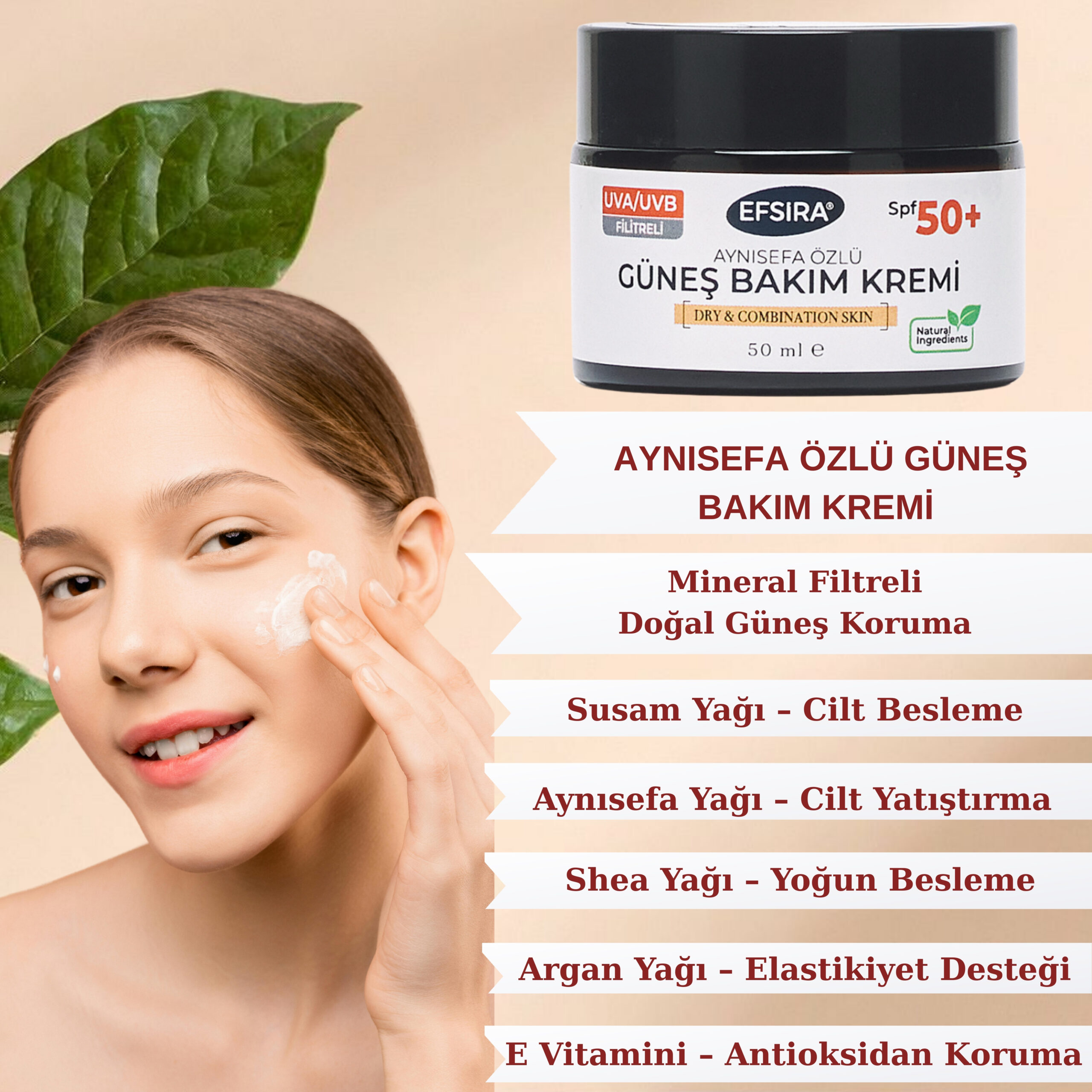 🌿 EFSIRA Aynısefa Özlü SPF 50+ Güneş Bakım Kremi